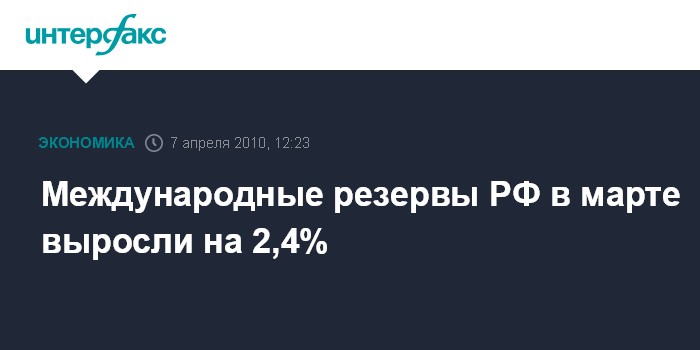 Москва. 7 апреля. INTERFAX.RU - Объем международных резервов РФ в марте увеличился на $10,669 млрд, или на 2,4% - до $447,004 млрд с $436,335 млрд. Такие данные приведены на интернет-сайте ЦБ РФ.