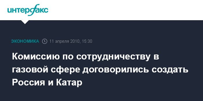 Доха (Катар). 11 апреля. INTERFAX.RU - Россия и Катар создадут комиссию по сотрудничеству в газовой сфере, сообщил в воскресенье в Дохе журналистам вице-премьер РФ Игорь Сечин. По его словам, договоренности с катарской стороной о создании комиссии достигнуты, и в ближайшее время Россия представит предложения по составу российской части комиссии.
