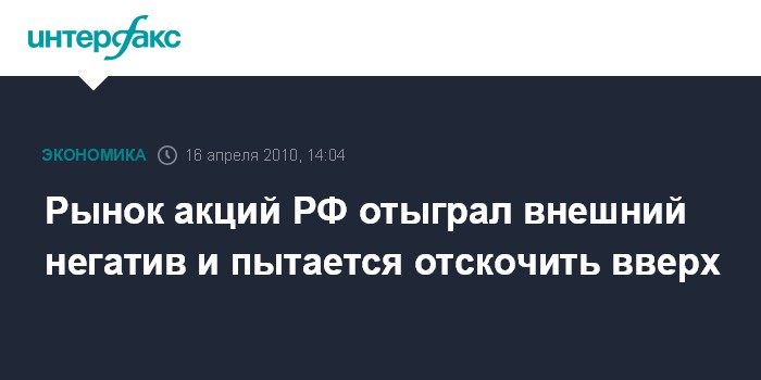 Москва. 16 апреля. ИНТЕРФАКС-АФИ - Рынок акций РФ утром в пятницу отыграл негативную динамику внешних фондовых площадок и нефти на новостях из Китая, после чего днем пытается отскочить вверх вслед за Европой.