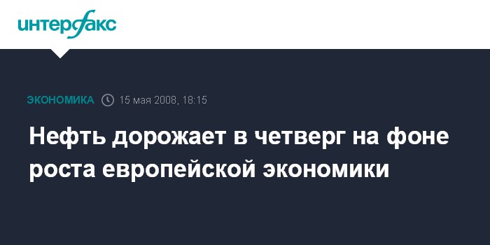 Москва. 15 мая. INTERFAX.RU - Нефть дорожает в ходе торгов в четверг после выхода данных об ускорении экономического роста в странах ЕС, сообщило агентство Bloomberg. ВВП еврозоны в первом квартале вырос на 0,7% относительно четвертого квартала 2007 года. Эксперты ожидали повышения этого показателя на 0,5%. Это говорит о том, что потребление топлива в еврозоне будет расти. Кроме того, по словам министра нефти Саудовской Аравии Али аль-Наими, спрос на нефть в развивающихся странах продолжает расти, несмотря на ее рекордно высокие цены.