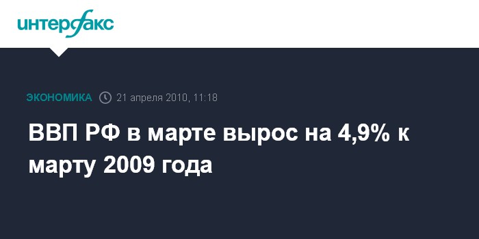 ВВП РФ в марте вырос на 4,9% к марту 2009 года