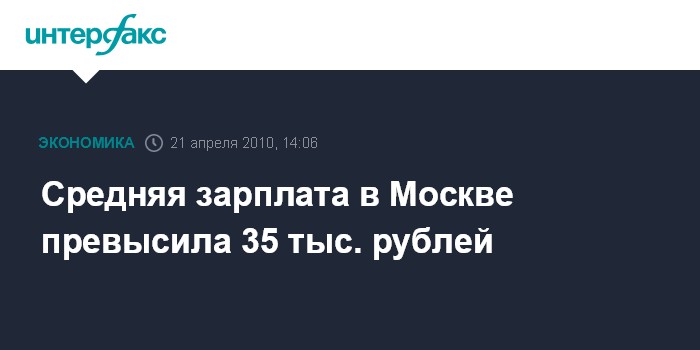 Москва. 21 апреля. INTERFAX.RU - Среднемесячная зарплата в Москве, по данным на февраль, составляет 35,6 тыс. рублей, сообщила руководитель департамента экономической политики и развития города Марина Оглоблина на пресс-конференции в центральном офисе "Интерфакса" в среду.