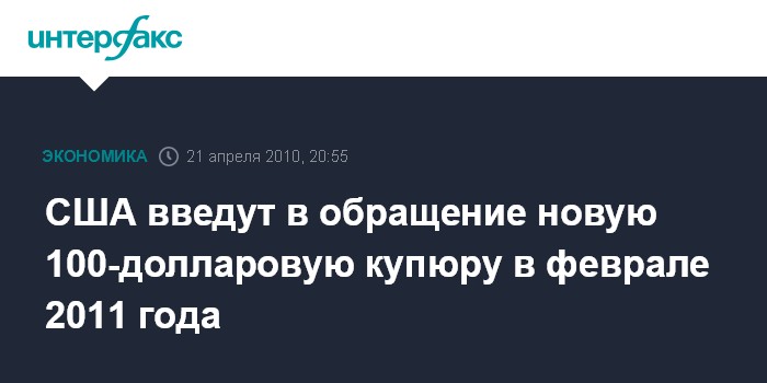 Москва. 21 апреля. INTERFAX.RU - Новую 100-долларовую купюру планируется ввести в обращение в феврале 2011 года, сообщил посланник-советник по экономическим вопросам посольства США в РФ Матиас Митман на презентации новой купюры в среду.