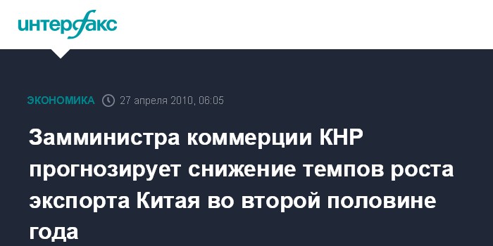 Пекин. 27 апреля. ИНТЕРФАКС - Из-за того, что потребности внешнего рынка растут низким темпами, в 2010 году китайский экспорт сначала будет расти быстро, однако в последующем рост замедлится, заявил замминистра коммерции КНР Чжун Шань.