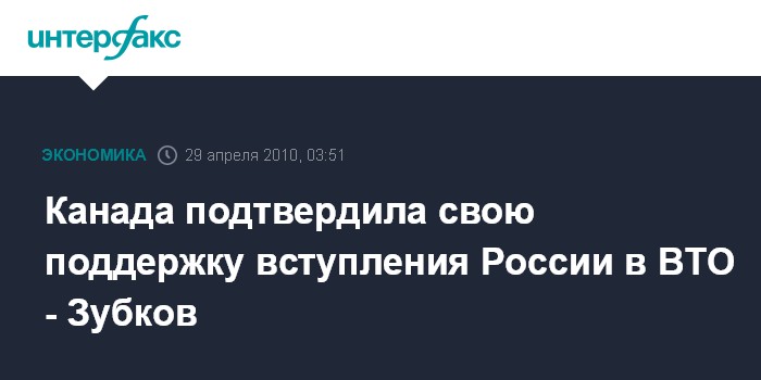 Канада подтвердила свою поддержку вступления России в ВТО - Зубков
