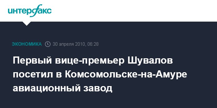 Первый вице-премьер Шувалов посетил в Комсомольске-на-Амуре авиационный завод