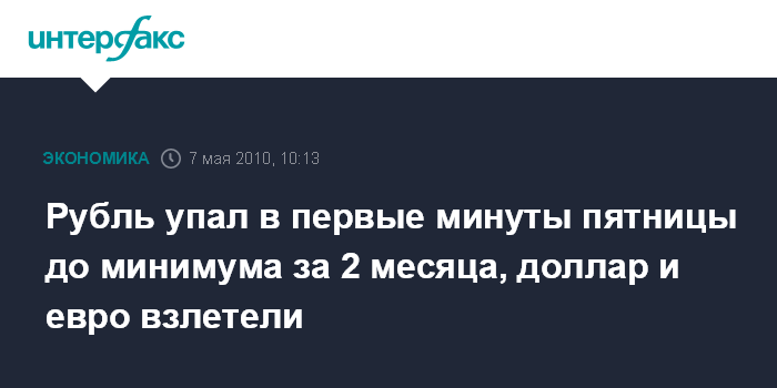 Москва. 7 мая. INTERFAX.RU - Доллар и евро взлетели на ММВБ в начале торгов пятницы, рубль рухнул к бивалютной корзине до минимума за 2 месяца на фоне падения цен на нефть и нестабильности на глобальных рынках.