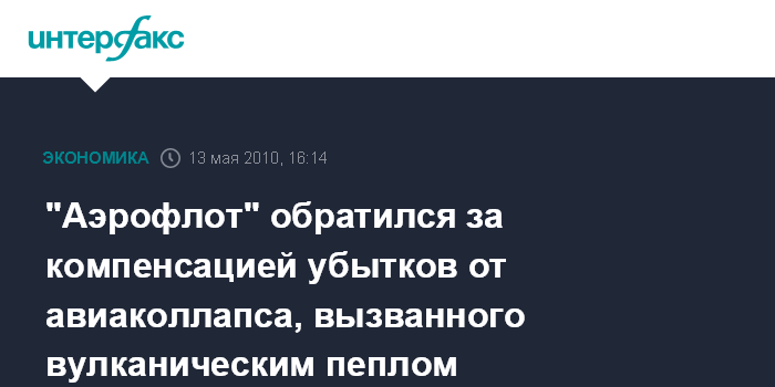 "Аэрофлот" обратился за компенсацией убытков от авиаколлапса, вызванного вулканическим пеплом