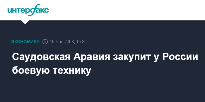 Москва. 19 мая. INTERFAX.RU - Саудовская Аравия вскоре получит крупную партию современных российских вооружений, пишет сегодня пакистанская "Дейли таймс". "Слухи о прорывном соглашении с Саудовской Аравией - традиционном покупателе оборонной техники США - начали циркулировать, когда в ноябре прошлого года Владимир Путин встретился с наследным принцем Саудовской Аравии Султаном ибн Абделем Азизом аль Саудом. Однако Россия и Саудовская Аравия предпочли не раскрывать деталей переговоров о контракте, которые продолжались примерно шесть месяцев", - пишет газета.