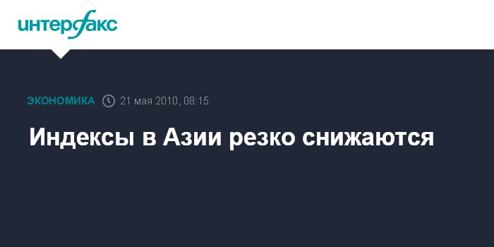 Москва. 21 мая. INTERFAX.RU - Фондовые индексы Азии резко снижаются в пятницу вслед за падением на Уолл-стрит, поскольку инвесторы обеспокоены возможными последствиями долговых проблем ряда стран еврозоны для мировой экономики экономисты, сообщило агентство Bloomberg. Опасения вызывает также прогнозируемое замедление экономического подъема в США.