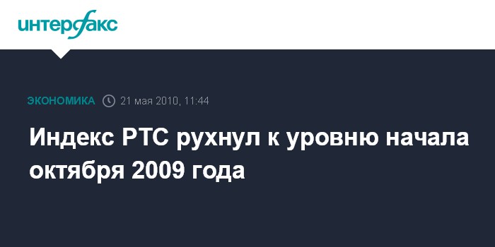Москва. 21 мая. INTERFAX.RU – Индекс РТС, один из основных российских фондовых индикаторов, утром в пятницу пробил отметку 1300 пунктов, рухнув к уровню начала октября 2009 года.