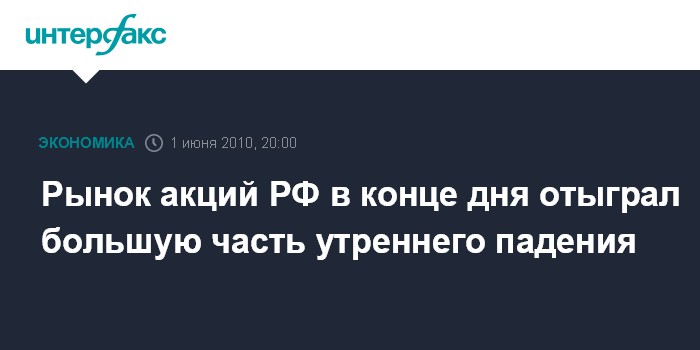 Москва. 1 июня. INTERFAX.RU - Российский рынок акций, открывшись гэпом вниз в пределах 1% и пробив в первой половине дня отметку в 1300 пунктов по индексу ММВБ, в середине дня лег в боковой тренд вслед за европейскими площадками, а после публикации в 18:00 мск макростатистики в США пошел вверх и отыграл большую часть падения.
