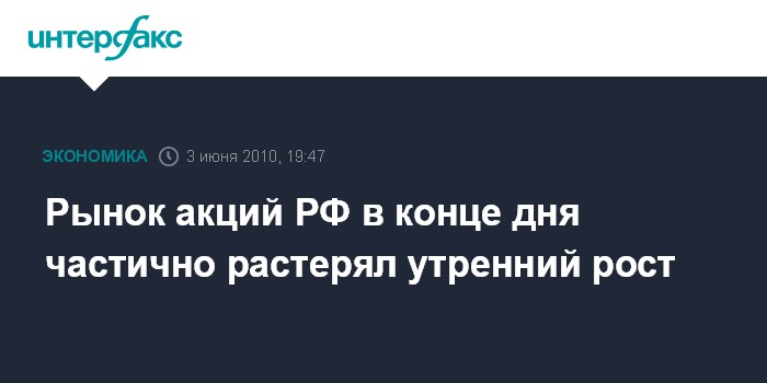 Москва. 3 июня. INTERFAX.RU - Российский рынок акций, открывшись в четверг ростом на 1,5-2,5%, в дальнейшем приостановил восходящее движение, уйдя в боковой дрейф. Между тем во второй половине дня, постояв около уровней открытия, рынок стал терять завоеванные позиции на фоне отсутствия роста на европейских торговых площадках и небольшого снижения на сырьевых рынках.