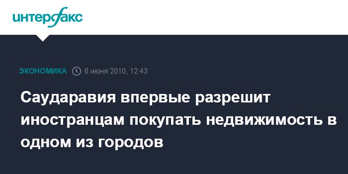 Саударавия впервые разрешит иностранцам покупать недвижимость в одном из городов