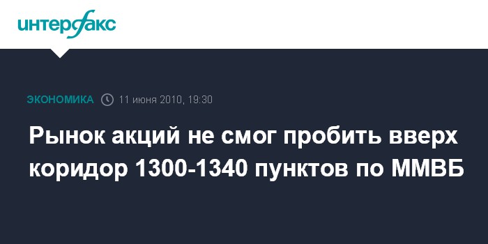 Москва. 11 июня. INTERFAX.RU - Попытка рынка акций РФ выйти вверх из коридора 1300-1340 пунктов по индексу ММВБ в пятницу провалилась из-за слабой статистики по розничным продажам в США за май, вызвавшей локальное ухудшение внешней фондовой конъюнктуры.