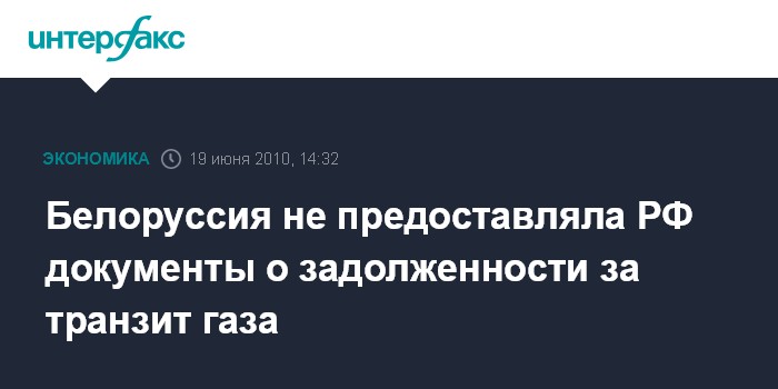 Москва. 19 июня. INTERFAX.RU - Белоруссия не предоставляла России документы о задолженности за транзит газа, сообщил вице-премьер РФ, председатель совета директоров "Газпрома" Виктор Зубков журналистам в кулуарах Петербургского международного экономического форума.