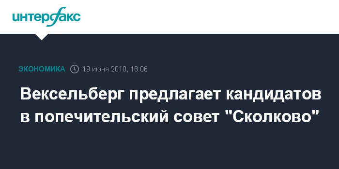 Москва. 19 июня. INTERFAX.RU – Сопредседатель наблюдательного совета "Сколково" Виктор Вексельберг предложил состав попечительского совета инновационного центра.