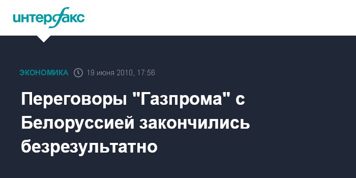 Москва. 19 июня. INTERFAX.RU – Переговоры руководства ОАО "Газпром" с представителями белорусского нефтегазового комплекса не привели к достижению договоренностей, сообщил журналистам глава "Газпрома" Алексей Миллер.