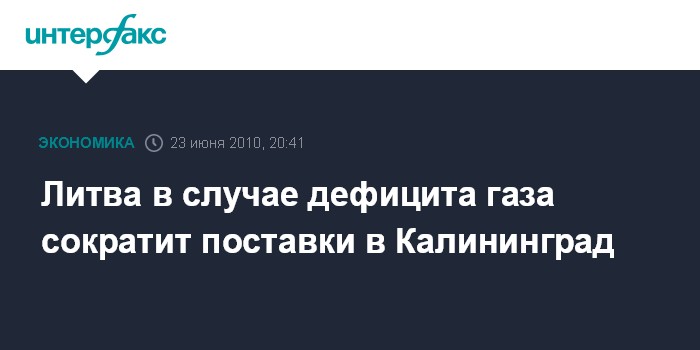 Москва. 23 июня. INTERFAX.RU - Литовская компания по транспортировке и поставкам газа Lietuvos dujos в случае возникновения в стране дефицита поставляемого из России газа, прежде всего, сократит объемы поставок в Калининградскую область РФ, куда газ поступает транзитом через территорию Литвы. "Если газа будет недостаточно, чтобы обеспечить своих потребителей, придется, прежде всего, сократить (поставки - BNS) Калининграду, пропорционально недополученному количеству. Здесь даже не может быть никаких разговоров", - сказал гендиректор Lietuvos dujos Викторас Валянтукявичюс (Viktoras Valentukeviсius) журналистам в среду.