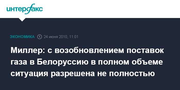 Миллер: с возобновлением поставок газа в Белоруссию в полном объеме ситуация разрешена не полностью