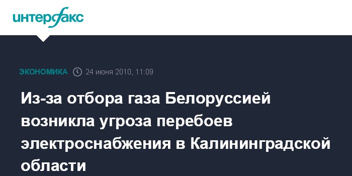 Москва. 24 июня. INTERFAX.RU - Вице-премьер РФ Игорь Сечин заявляет о проблемах с подачей электричества в Калининградскую область из-за несанкционированного отбора российского газа Белоруссией. "К сожалению, отбор газа, который производится белорусской стороной, снижает транзит газа, в том числе на Калининградскую ТЭЦ-2, и здесь возникают дополнительные угрозы для выработки электроэнергии в Калининграде", - заявил И.Сечин на совещании, которое провел премьер-министр РФ Владимир Путин в аэропорту Новокузнецка.