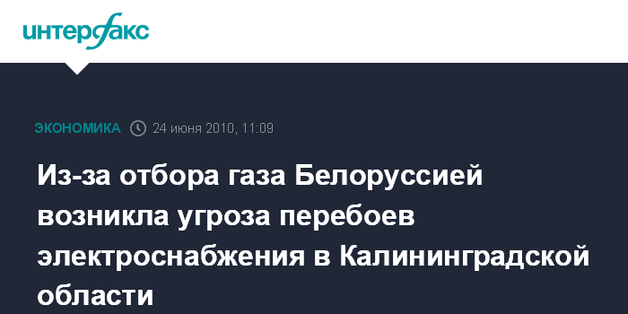 Из-за отбора газа Белоруссией возникла угроза перебоев электроснабжения в Калининградской области