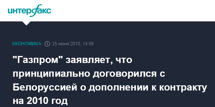 "Газпром" заявляет, что принципиально договорился с Белоруссией о дополнении к контракту на 2010 год