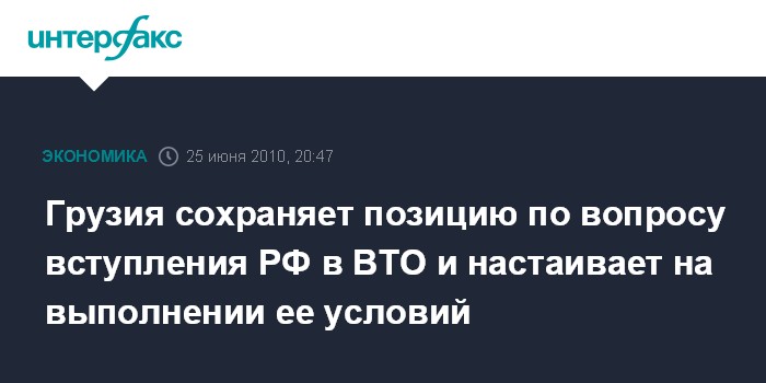 По его словам, "у Грузии несколько условий, и если они будут удовлетворены, то Грузия поддержит вступление России в ВТО". В частности, республика требует от РФ совместного контроля за таможенно-пропускными пунктами в Абхазии и Южной Осетии, а также имеет претензии в вопросе эмбарго на грузинскую продукцию. В Тбилиси полагают, что без согласия Грузии Россия не сможет присоединиться к торговой организации.