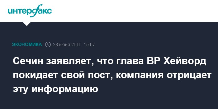 Сечин заявляет, что глава BP Хейворд покидает свой пост, компания отрицает эту информацию
