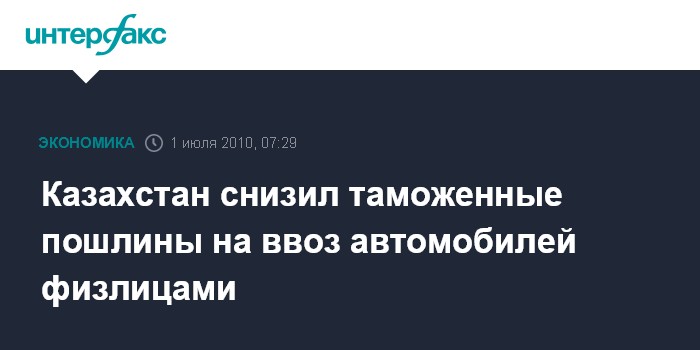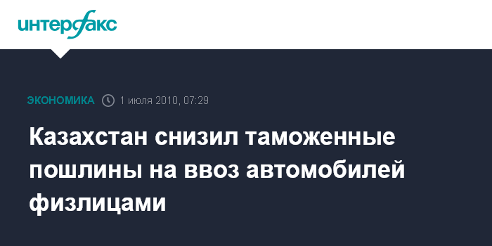 Астана. 1 июля. ИНТЕРФАКС-КАЗАХСТАН - В Казахстане вступили в силу пониженные таможенные пошлины на ввоз автомобилей физическими лицами.