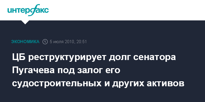 ЦБ реструктурирует долг сенатора Пугачева под залог его судостроительных и других активов