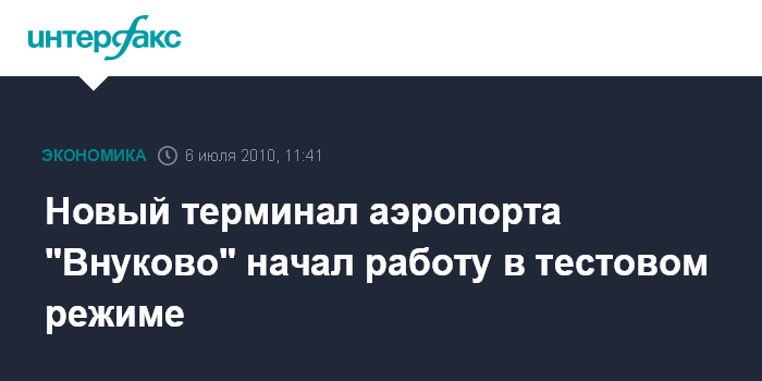 Москва. 6 июля. INTERFAX.RU - Терминал A международного аэропорта "Внуково" введен во вторник в эксплуатацию в тестовом режиме, сообщил корреспондент "Интерфакса".