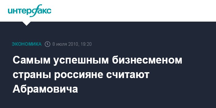 Москва. 8 июля. INTERFAX.RU - Каждый десятый (11%) россиянин считает бизнесмена Романа Абрамовича самым успешным отечественным предпринимателем, показал июльский опрос Фонда "Общественное мнение", проводившийся в 44 субъектах РФ.