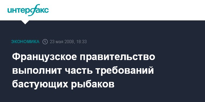 Москва. 23 мая. INTERFAX.RU - Министр сельского хозяйства и рыболовства Франции Мишель Барнье пообещал в пятницу выполнить часть требований рыбаков, организовавших забастовку. Министр заверил, что принятый на днях шестимесячный план по оказанию социальной помощи рыбакам, будет действовать и после истечения намеченного срока. Именно это и было одним из требований бастующих.