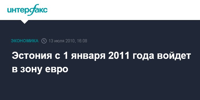 Москва. 13 июля. INTERFAX.RU - Совет министров экономики и финансов Европейского союза (Ecofin) принял во вторник решение о вхождении Эстонии в зону евро. Как сообщили "Интерфаксу" в пресс-службе министерства финансов Эстонии, страна станет 17-м членом еврозоны c 1 января 2011 года.