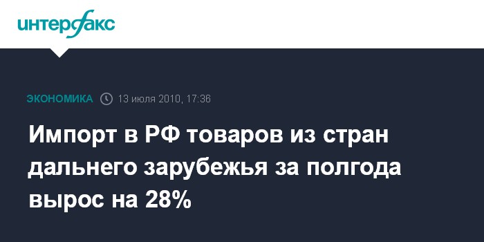 Импорт в РФ товаров из стран дальнего зарубежья за полгода вырос на 28%