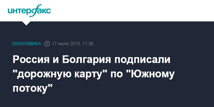 Москва. 17 июля. INTERFAX.RU - Болгария и Россия согласовали и подписали "дорожную карту" по строительству газопровода "Южный поток", а также протокол по поставкам российского газа в Болгарию.