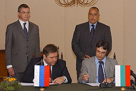 Москва. 17 июля. INTERFAX.RU - Болгария и Россия согласовали и подписали "дорожную карту" по строительству газопровода "Южный поток", а также протокол по поставкам российского газа в Болгарию. Документы в правительственной резиденции "Евксиноград" в присутствии премьер-министра Болгарии Бойко Борисова подписали министр энергетики России Сергей Шматко и министр экономики, энергетики и туризма Болгарии Трайчо Трайков.