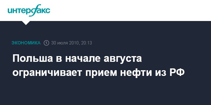 Москва. 30 июля. INTERFAX.RU - Польша в начале августа ограничивает прием нефти из России, сообщили "Интерфаксу" участники рынка.