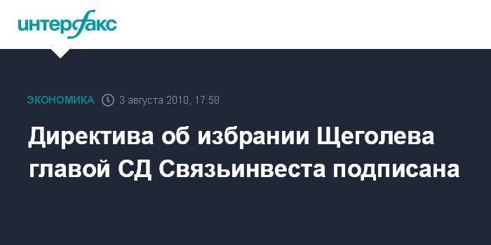 Директива об избрании Щеголева главой СД Связьинвеста подписана