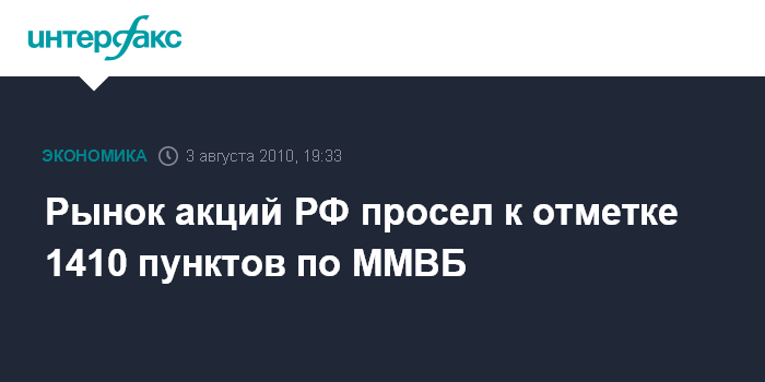 Москва. 3 августа. INTERFAX.RU - Российский рынок акций во вторник просел к 1410 пунктам по индексу ММВБ вслед за Европой и США, негативом для фондовых площадок стал ряд слабых квартальных отчетов и статистика по США; от более глубокой просадки рынок удержала дорогая нефть.