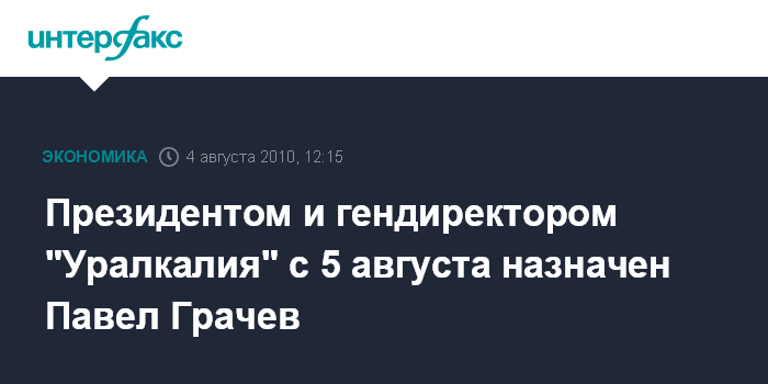 Как говорится в пресс-релизе "Уралкалия", с 5 августа Грачев будет также назначен председателем правления компании.
