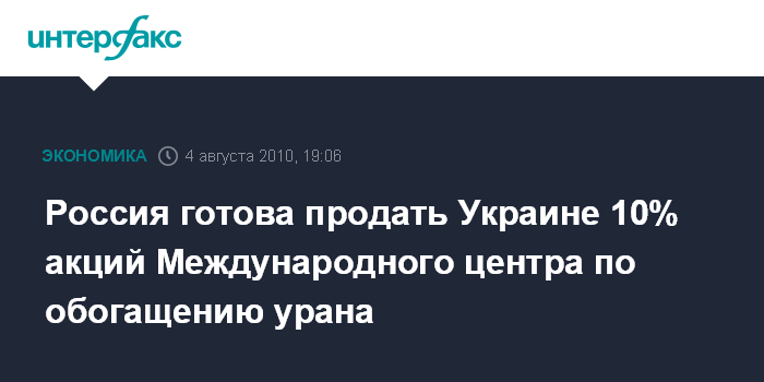 Россия готова продать Украине 10% акций Международного центра по обогащению урана