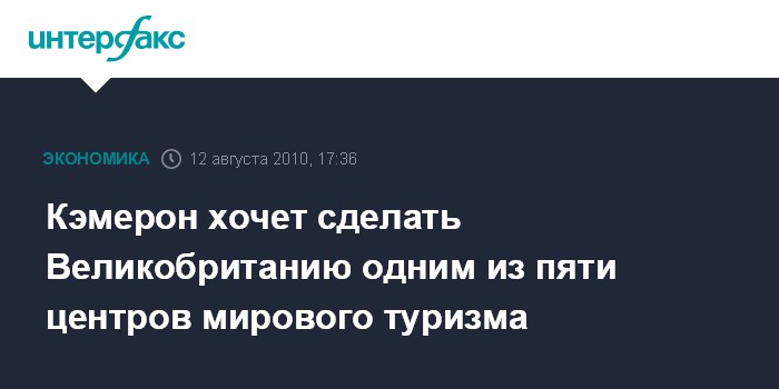 Лондон. 12 августа. INTERFAX.RU - Премьер-министр Великобритании Дэвид Кэмерон пообещал сделать страну одним из пяти туристических центров мира.