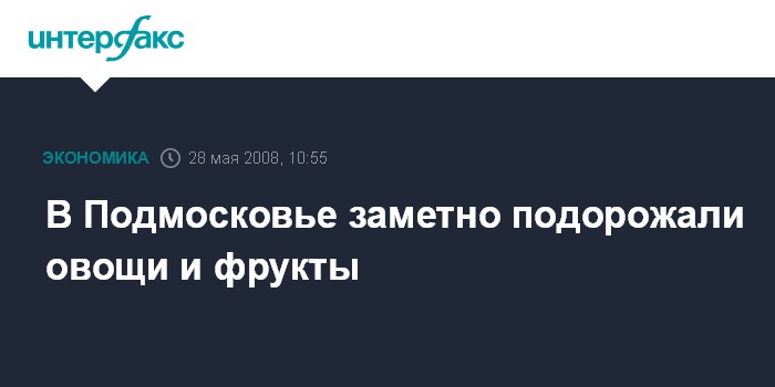 Москва. 28 мая. INTERFAX.RU - В мае в Подмосковье заметно выросли цены на сезонные овощи и фрукты, сообщили "Интерфаксу" в пресс-службе министерства потребительского рынка и услуг Московской области.