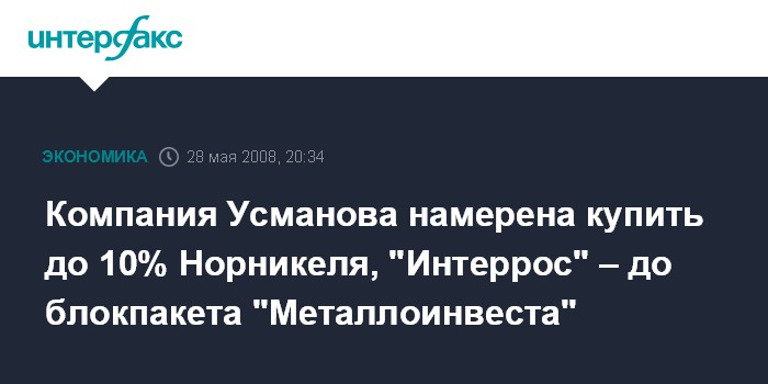 Компания Усманова намерена купить до 10% Норникеля, "Интеррос" – до блокпакета "Металлоинвеста"