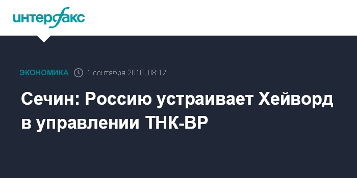 Сечин: Россию устраивает Хейворд в управлении ТНК-ВР