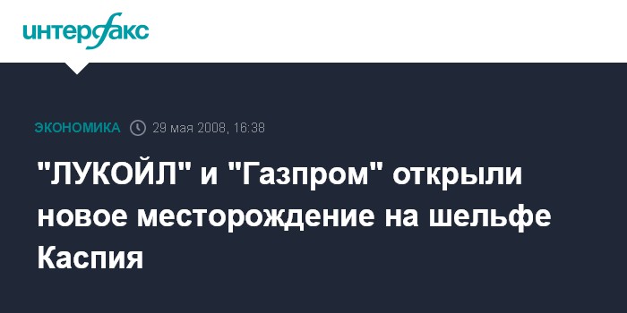 Москва. 29 мая. ИНТЕРФАКС-АНИ - ОАО НК "ЛУКОЙЛ" и "Газпром" открыли крупное нефтегазоконденсатное месторождение на структуре Центральная на шельфе Каспия, говорится в сообщении "ЛУКОЙЛа".