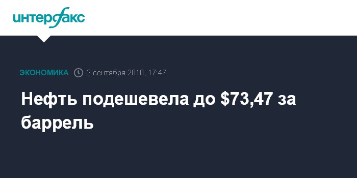 Нью-Йорк. 2 сентября. INTERFAX.RU - Нефть в ходе вечерних торгов в четверг опустилась в цене до $73,47 за баррель на возросших опасениях относительно перспектив восстановления американской экономики после выхода слабой статистики с рынка труда страны.