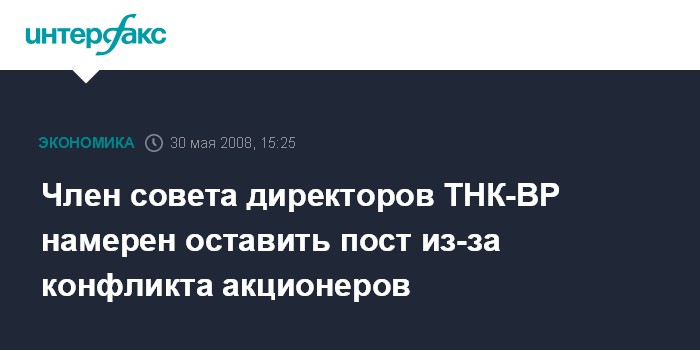 Член совета директоров ТНК-ВР намерен оставить пост из-за конфликта акционеров